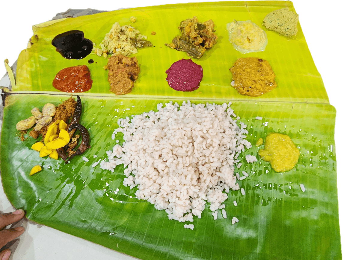 A Kerala-style feast inspired by the Malabar Brahmin cuisine, known for its unique flavors. It includes dishes like olan, kalan, parippu curry, and banana chips, offering a delicious regional touch to the wedding menu.