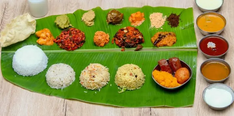 A sattvic meal served just after the Kanyadaanam ritual. The meal is simple, without garlic or onions, featuring items like plain rice, dal, vegetable curry, pappu, and payasam.